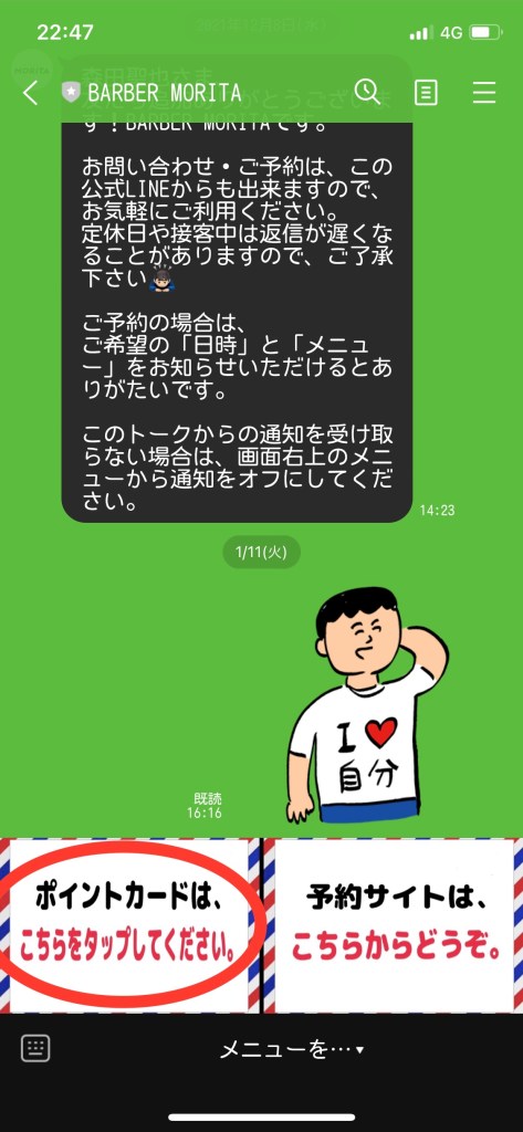 BARBER MORITAの公式LINEアカウントを「友だち追加」していただき、