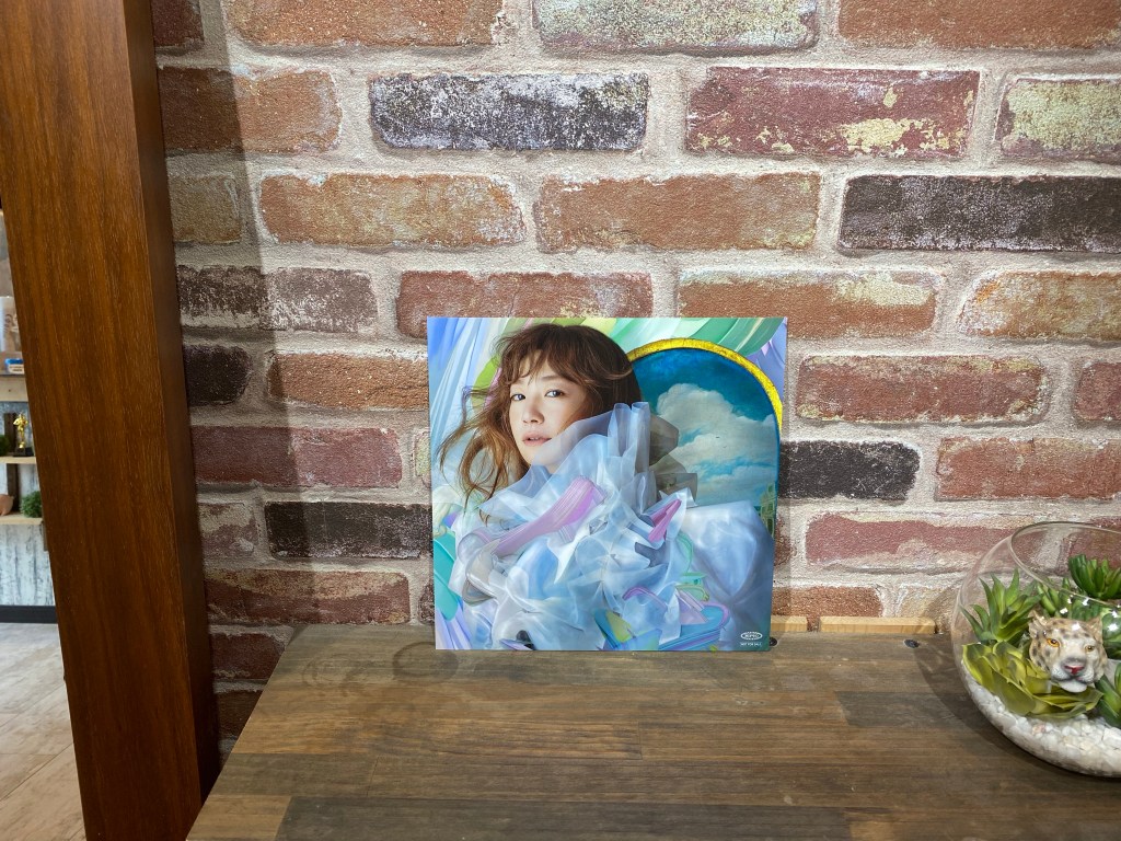 特典で付いていたデカいCDジャケットをお店に飾らせてもらってます。